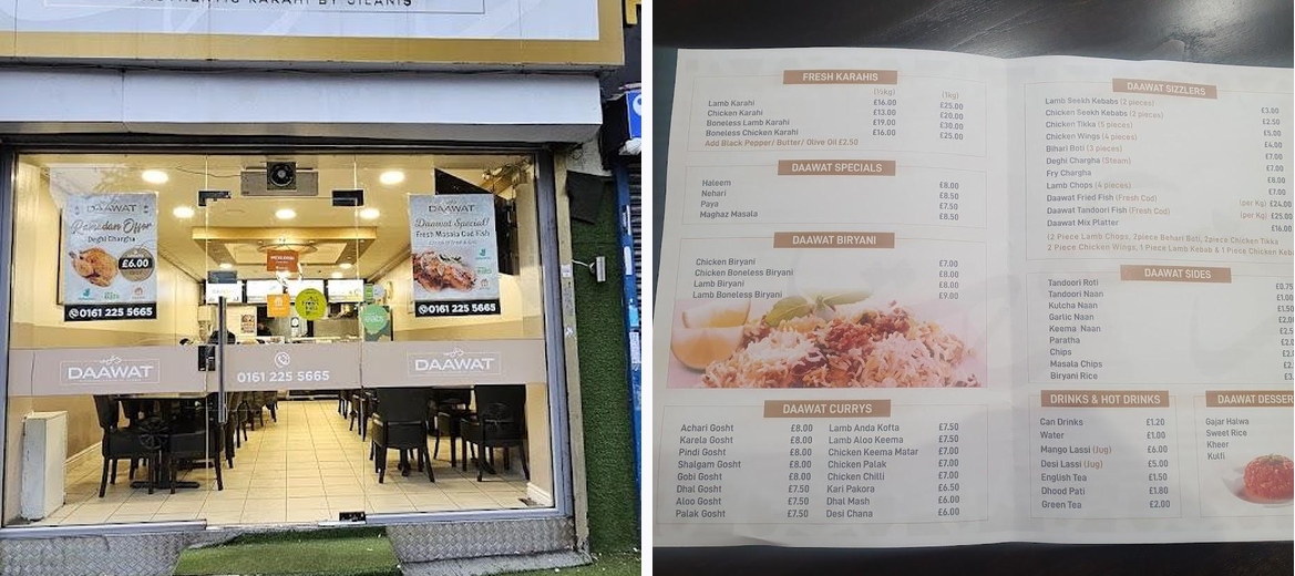 Discover authentic Indian cuisine at Daawat in Levenshulme, Manchester! Enjoy a casual atmosphere perfect for solo diners, families, and groups. Savor our delicious kebabs, lamb and chicken karahi, and an array of tantalizing curries. With takeaway, delivery, and dine-in options, indulge in halal food and late-night bites. Join us for brunch, lunch, or dinner and experience the vibrant flavors of desi food. Visit us today or call +44 161 225 5665 to make a reservation!